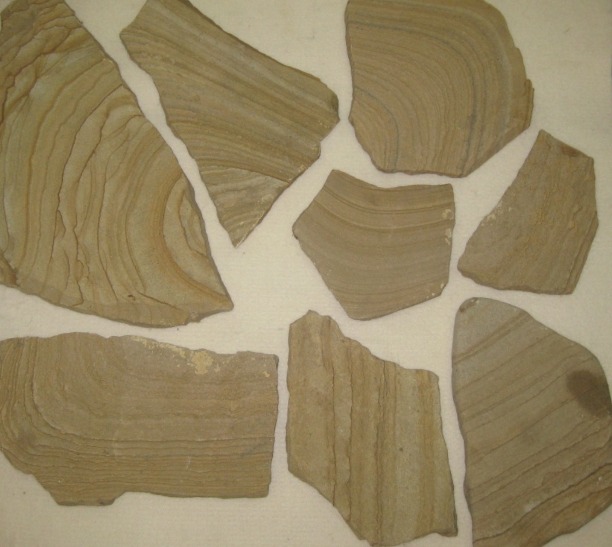 Желтые, серо-зеленые, светло-серая, красноватые и зеленоватые элементы выглядят гармонично. Такая плитка используется для ландшафтного проектирования, дорожек, беседок, площадок вокруг бассейна или пруда, для беседок в саду, облицовки, мест для барбекю и др.