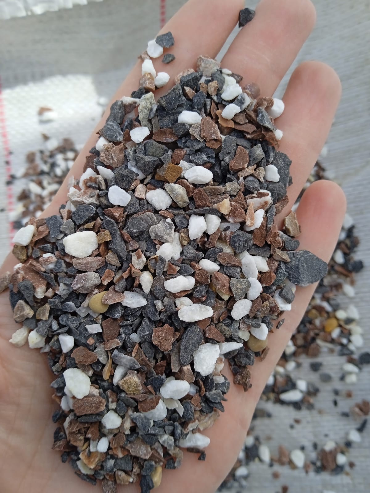 • Мраморная крошка (щебень крошка микс : белый-черный-розовый) фр. 5-10 мм.