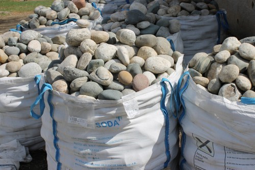 Валуны размером до 400 мм привозят в биг-бэгах. Валуны большим размером привозят навалом в фурах. В последствии их выгружают спецтехникой при использовании тн чалок.